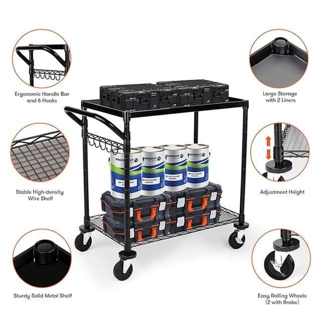 1) Article:Heavy Duty Rolling Utility Cart, Commercial Grade Metal Cart with Handle Bar & Shelf Liner,Trolley Serving Cart